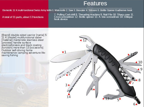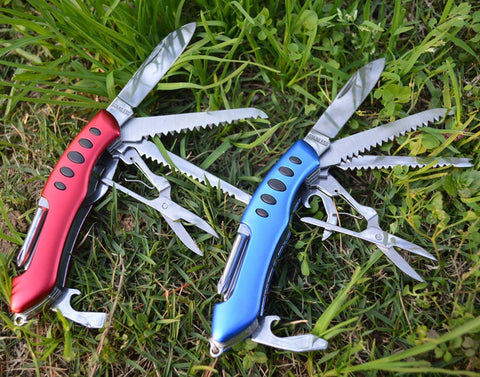 11 open 13 function life-saving knife, three-color 105mm stainless steel multi-function knife, camping equipment portable folding knife