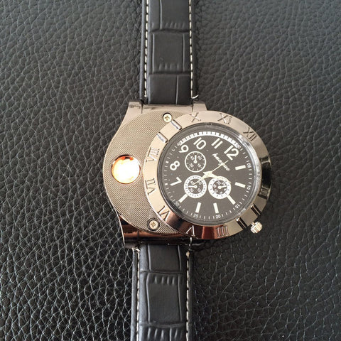 Personalized creative watch charging lighter usb metal men's watch with real watch cigarette lighter